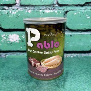 کنسرو ۴۰۰ گرم سوپرپرمیوم پابلو با طعم میکس گوشت و مرغ و بوقلمون